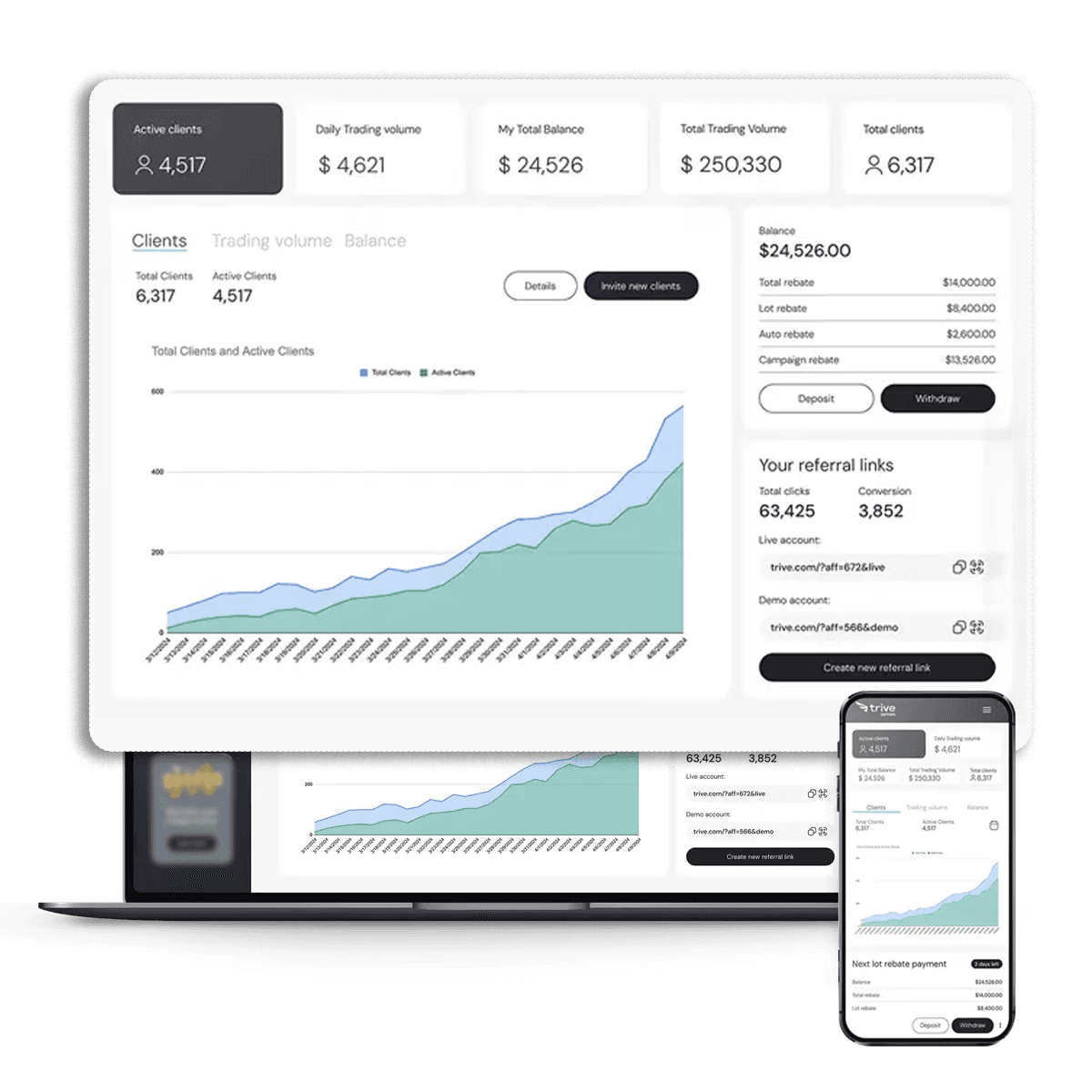 Pantau penghasilan Anda secara langsung melalui Partners Portal Trive Invest.
